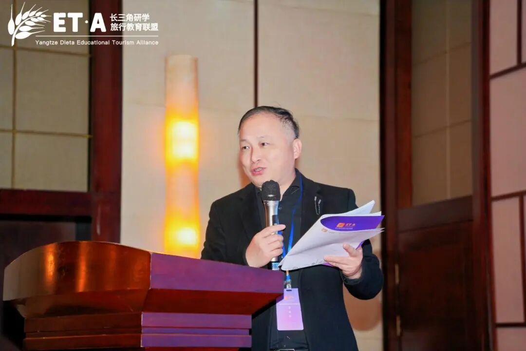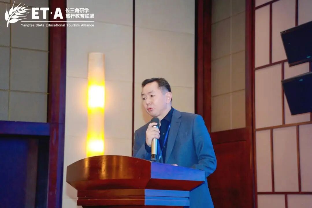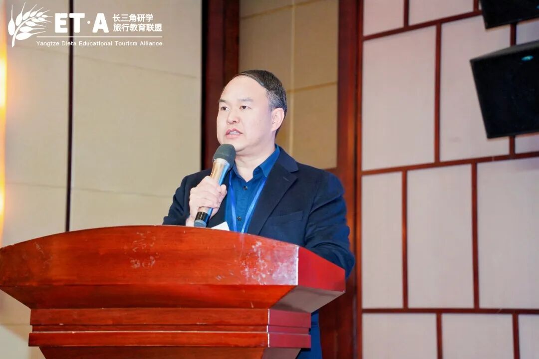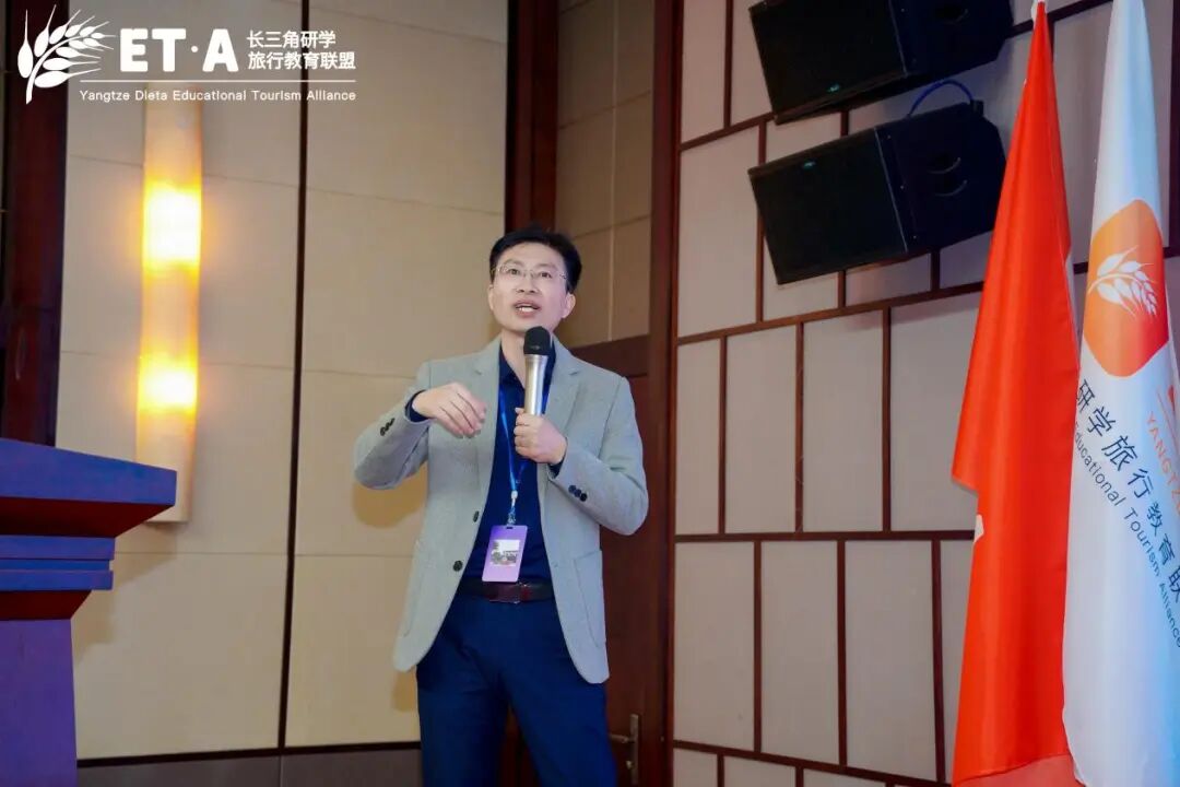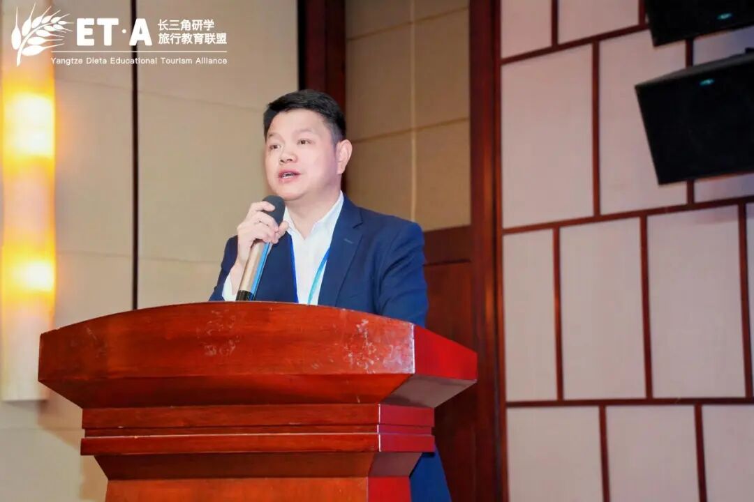 杨光富代表长三角研学旅行教育联盟祝贺第三届长三角研学教育研讨会的顺利召开,感谢在座各位的积极参与。杨会长首先介绍了第二届长三角研学旅行教育联盟的换届基本情况,他表示联盟的发展定位是立足长三角,辐射全中国。随后,杨会长对这次研讨会的情况做了简要总结,同时,对本次会议的承办方,苏州市吴中区甪直高级中学、甪直文旅发展集团有限公司、苏州吴中区新时代青少年教育研究院、苏州自得教育科技有限公司等单位为本次活动的顺利召开所付出的努力表示感谢。最后,杨会长提出了几点发展思路,一是设立专业委员会,聚焦细分领域深化研究与合作;二是以共同体项目为纽带,带动联盟发展;三是加强研学课程研发,打造一批高质量、可复制的精品课程;四是强化宣传推广,提升长三角研学旅行品牌影响力。