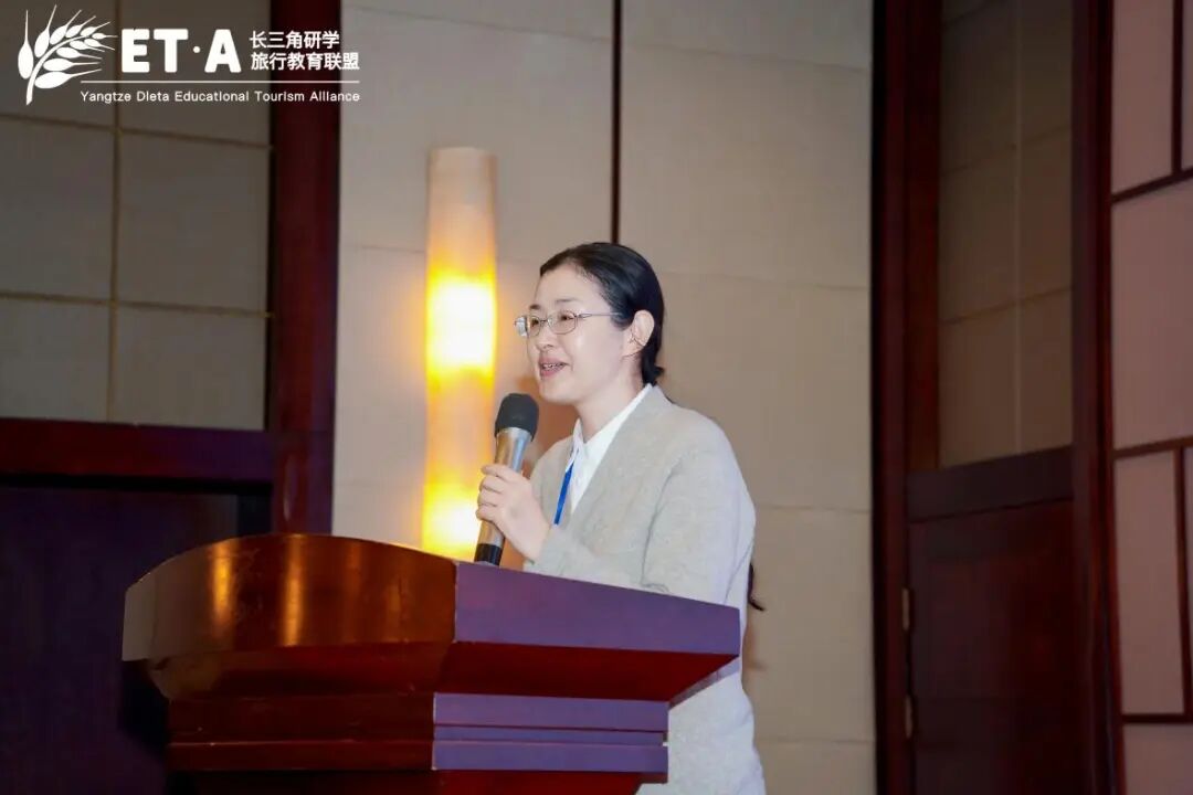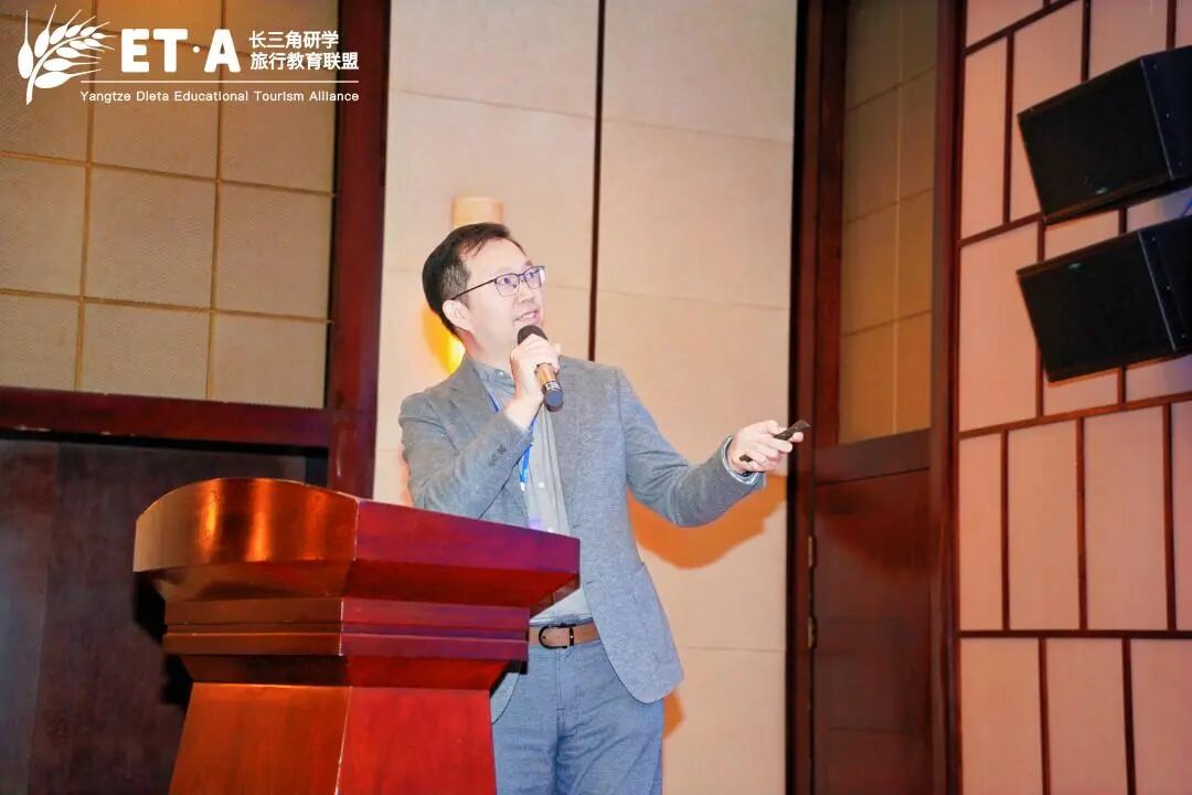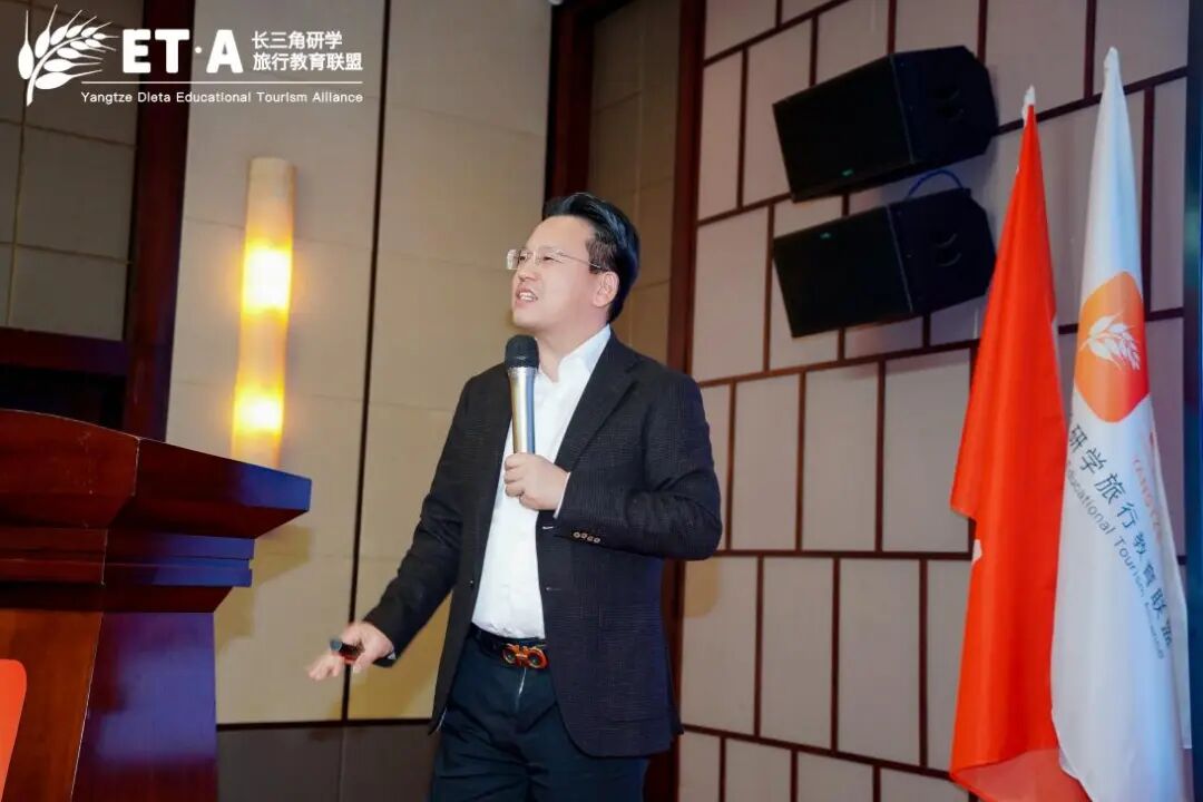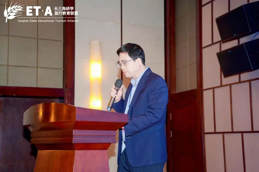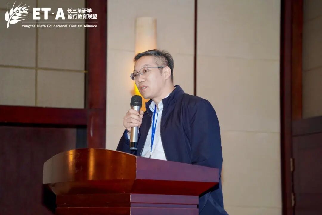 杨光富代表长三角研学旅行教育联盟祝贺第三届长三角研学教育研讨会的顺利召开,感谢在座各位的积极参与。杨会长首先介绍了第二届长三角研学旅行教育联盟的换届基本情况,他表示联盟的发展定位是立足长三角,辐射全中国。随后,杨会长对这次研讨会的情况做了简要总结,同时,对本次会议的承办方,苏州市吴中区甪直高级中学、甪直文旅发展集团有限公司、苏州吴中区新时代青少年教育研究院、苏州自得教育科技有限公司等单位为本次活动的顺利召开所付出的努力表示感谢。最后,杨会长提出了几点发展思路,一是设立专业委员会,聚焦细分领域深化研究与合作;二是以共同体项目为纽带,带动联盟发展;三是加强研学课程研发,打造一批高质量、可复制的精品课程;四是强化宣传推广,提升长三角研学旅行品牌影响力。