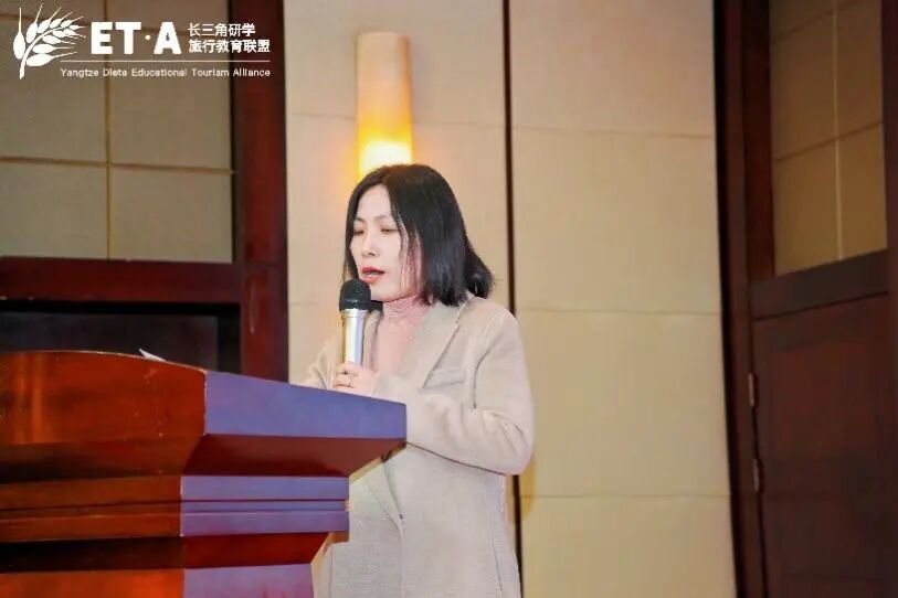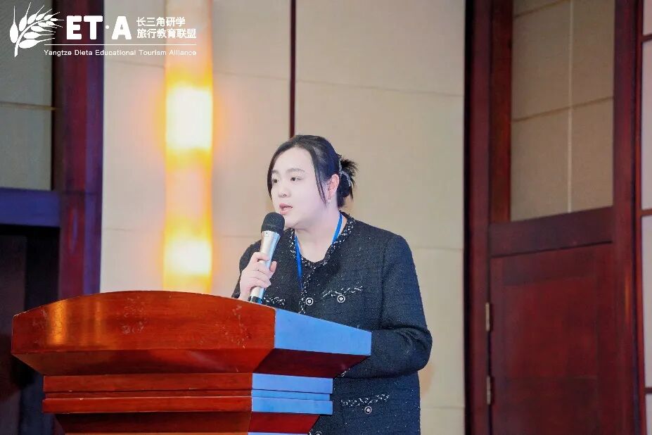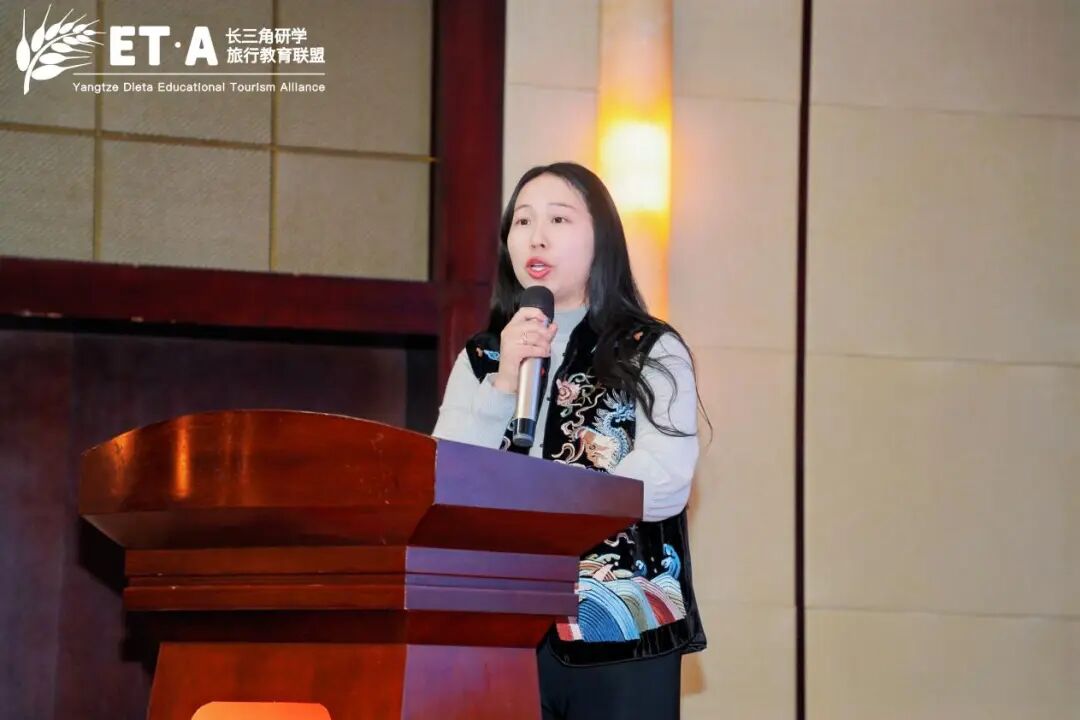 “长三角研学教育精品路线奖”获奖代表上海霖儒教育科技有限公司徐红春发表获奖感言。她首先感谢长三角研学旅行教育联盟给予的这份荣誉,感谢各位评委专家对非遗文化传承,让非遗活在当下,走进少年的期许与认可,感谢联盟搭建的教育平台,为优质教育资源的深度融合打开了广阔的空间。她表示对研学旅行事业的发展充满了无限希望,未来,在积极学习的同时,期待与全体同仁同心同行,共创联盟美好的明天。