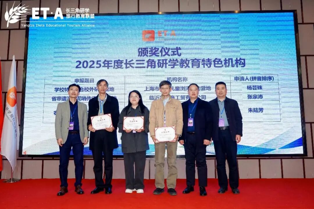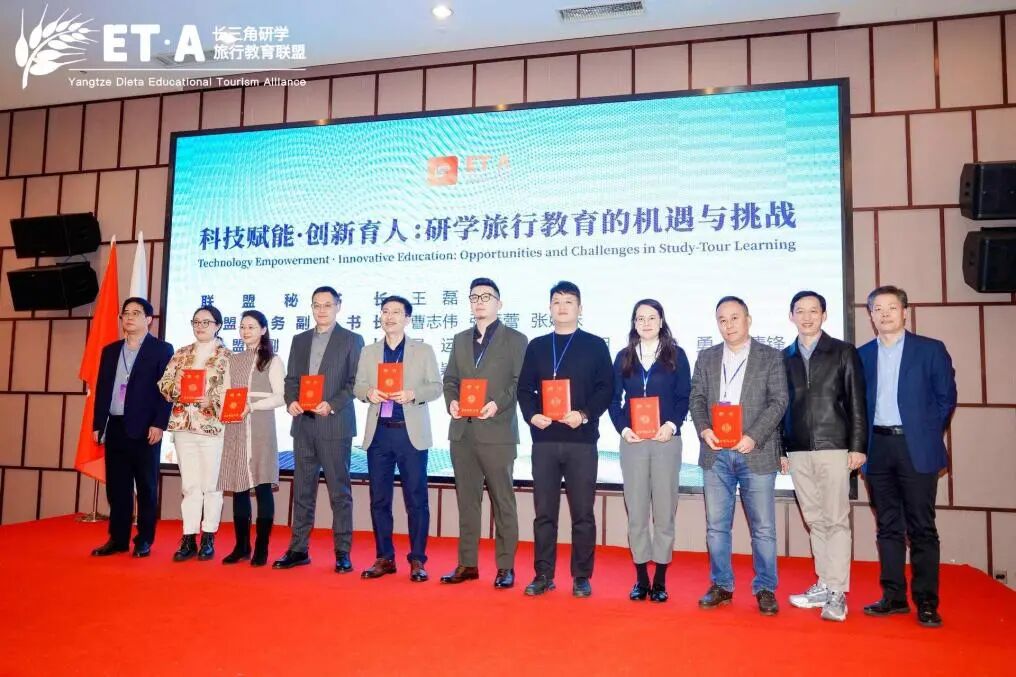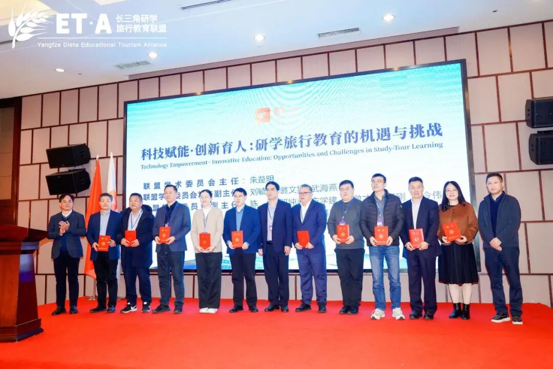 联盟秘书长、上海师范大学教授王磊,联盟副会长、安徽迎驾文旅集团有限公司总经理汪胜利,联盟副会长、江苏省苏州市甪直高级中学党总支书记高月新共同为研学教育“特色机构”颁奖。