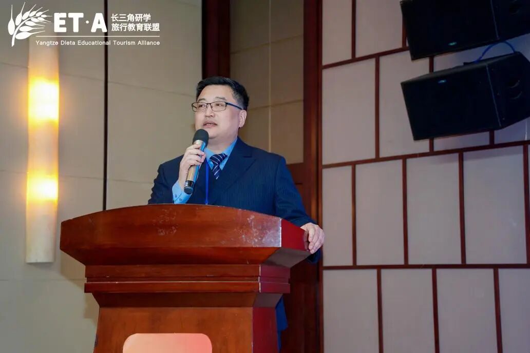 首先,联盟副会长、安徽迎驾文旅集团有限公司总经理汪胜利发表致辞,他代表第四届长三角研学旅行教育研讨会承办方祝贺第三届长三角研学旅行教育研讨会的胜利召开。热情介绍了安徽迎驾文旅集团的主要产业内容和研学旅行基地建设。他表示,作为下一届研讨会的承办方,深感荣幸,也充满期待,将以第四届研讨会为契机,与长三角地区各研学营地及机构携手研学共同绘就教育高质量发展的新蓝图,谱写研学教育创新育人的崭新篇章。