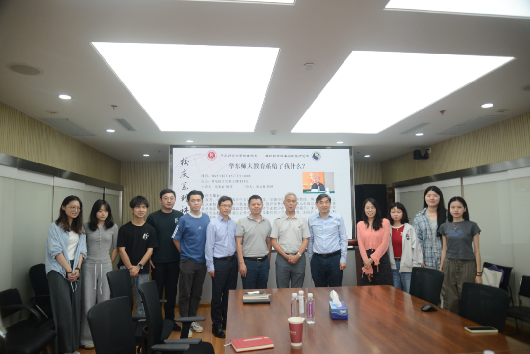 10月15日上午10:00,由华东师范大学教育学系、基础教育改革与发展研究所联合主办的校庆系列讲座之“华东师大教育学系给了我什么?”在文科大楼1113室顺利开讲。本次讲座特邀华东师大教育学系1999级系友、安徽师范大学二级教授、博士生导师朱家存教授担任主讲人,教育学系主任黄忠敬教授担任主持人,刘世清教授、程亮教授以及多名硕博研究生到场聆听。
