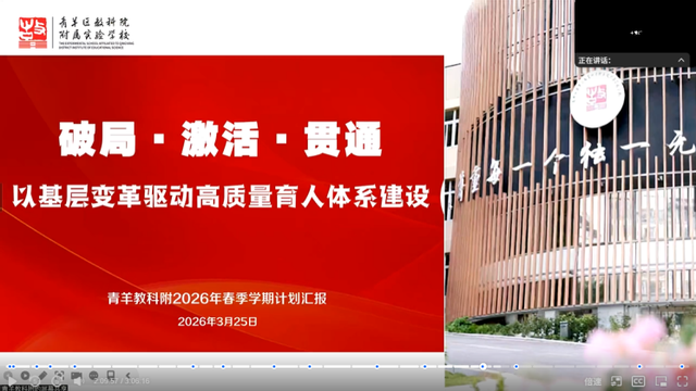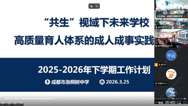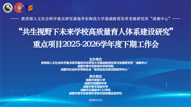 “共生视野下未来学校高质量育人体系建设研究”是教育部人文社会科学重点研究基地华东师范大学基础教育改革与发展研究所“成都中心”近三年的重点项目。2026年3月25日晚,项目组2026年春季学期启动会以线上形式顺利召开。